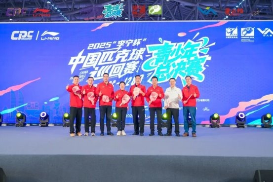 中国匹克球巡回赛组委会秘书长宋鸿飞、厦门市体育局副局长陈岚、厦门市翔安区人民政府副区长张小博、厦门市翔安区文化和旅游局副局长、四级调研员袁一仁、厦门国贸会展集团副总经理、厦门国贸会展运营公司董事长方志国、内蒙古华羽文化发展有限公司董事长林毅、搜房网创始人李忠、唐古拉运动科技(厦门)有限公司董事刘铭共同出席2025“李宁杯”中国匹克球巡回赛青少年总决赛开赛仪式。
